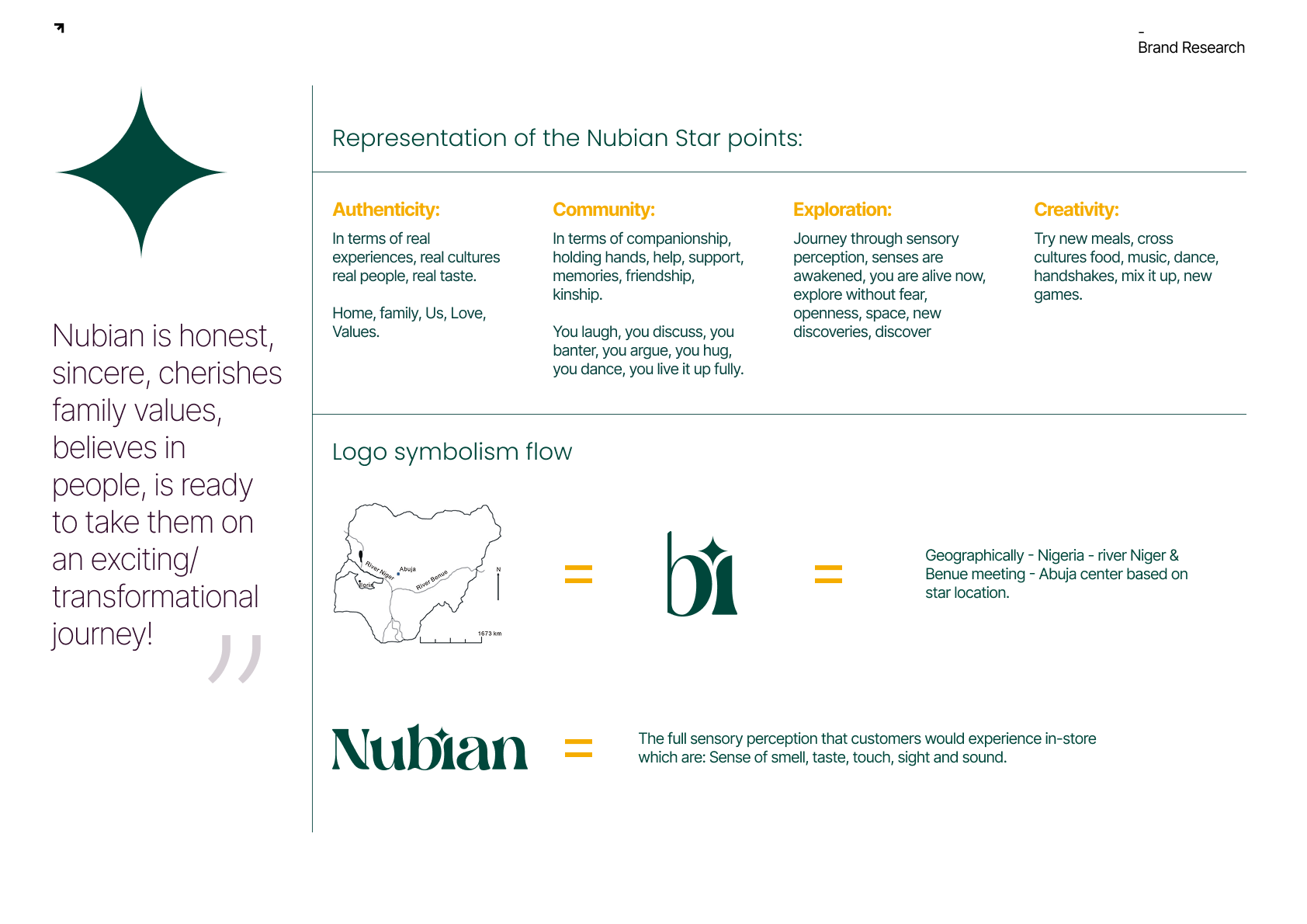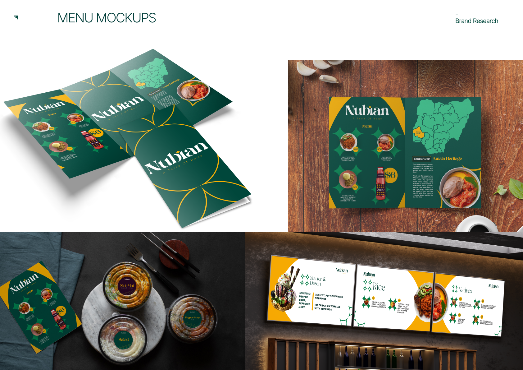 Our goal was to create a visually striking yet deeply symbolic identity that reflects Nubian’s role as a culinary guide to authentic Nigerian flavors.